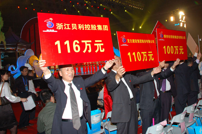 10月11日晚,由浙江省第八届全国残疾人运动筹委会、中国残疾人福利基金主办的“大爱浙江,激情残运”--第八届全国残运会倒计时一周年爱心助残晚会在黄龙体育馆举行。省长吕祖善、中国残联理事长王新宪出席晚会,中国残联主席张海迪、省委副书记夏宝龙致词,副省长陈加元主持捐赠仪式。现场有100余家单位举牌认捐,共捐赠1亿余元,其中,贝利控股集团有限公司捐赠116万元,被授予“爱心企业”荣誉称号。