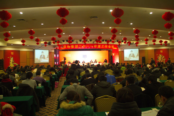 会议在高亢激昂的国歌声中正式开始。集团总裁宋勇作了《贝利集团2010年度工作报告》。