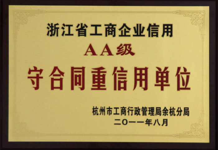 8月25日,杭州国泰房地产开发有限公司被认定为“浙江省工商业企业信用AA级‘守合同重信用’单位”。