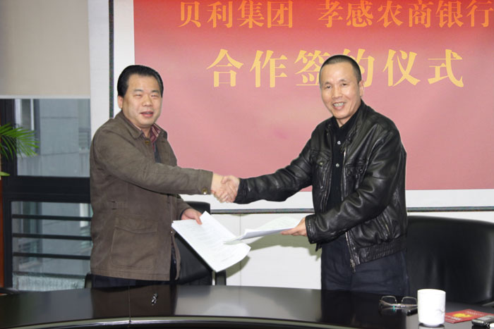 12月6日,湖北省孝感市农村信用合作社联合社党委书记、理事长鄢来君一行莅临贝利集团。集团董事长沈国健、总裁宋勇等亲切接待。双方就相关投资合作事宜签订合作协议。