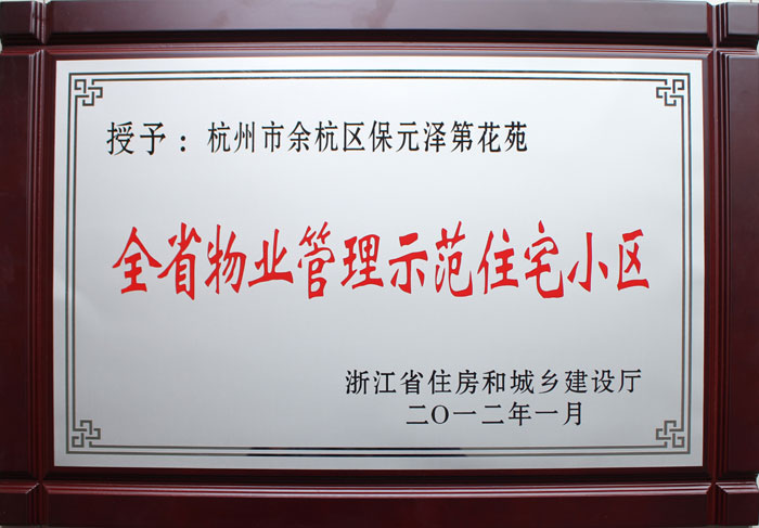 保元泽第荣获余杭区唯一“2011年度全省物业管理示范住宅小区”称号