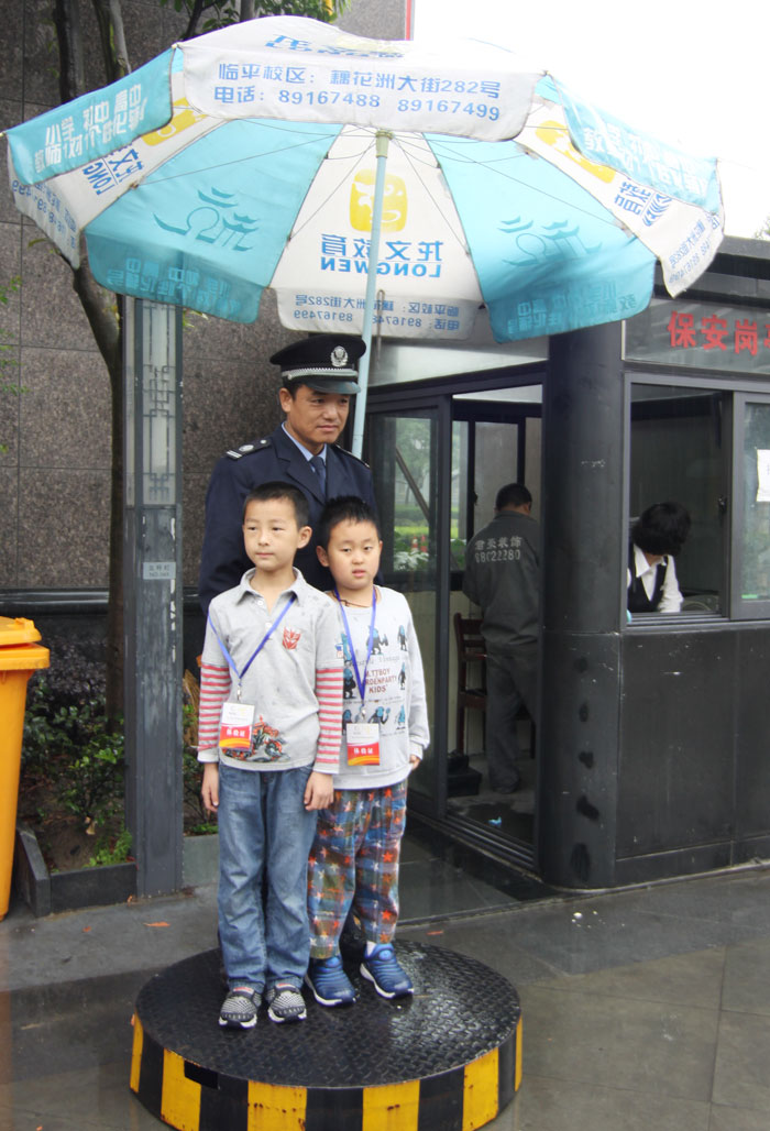 当天上午,天公虽不作美,下起了大雨,但丝毫不影响小业主们体验工作的激情:在人车流量最大的北门,与保安叔叔一起并肩站岗,一丝不苟地登记外来车辆和来访人员,还主动为前来做家政服务的阿姨撑伞;在电梯机房,仔细聆听电梯安全运行保障的讲解,学习电梯内每个按钮的功能及乘梯的注意事项;在水处理机房, 了解小区内的污水处理、雨水排放是如何实现,并亲手启动排水泵;在有“小区智能化核心”之称的监控室,观察由 12台监控电视,4台监控电脑,2台门禁对讲管理机、周界报警系统,1台消防报警柜组成的监控系统,102个监控画面忠诚记录着小区各门口、周界、地下室、电梯等的图像。