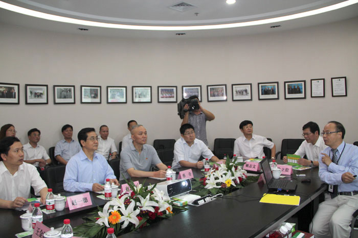 易文赛总经理项春生教授(右一)汇报易文赛公司发展情况