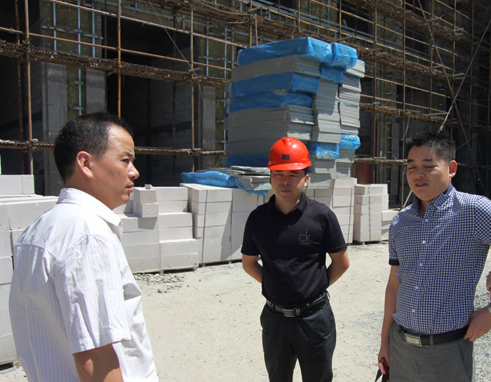 丁总(中)在桐乡威尼斯项目部慰问