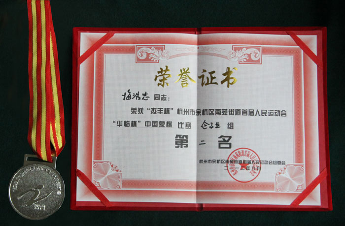 亚军奖牌和荣誉证书