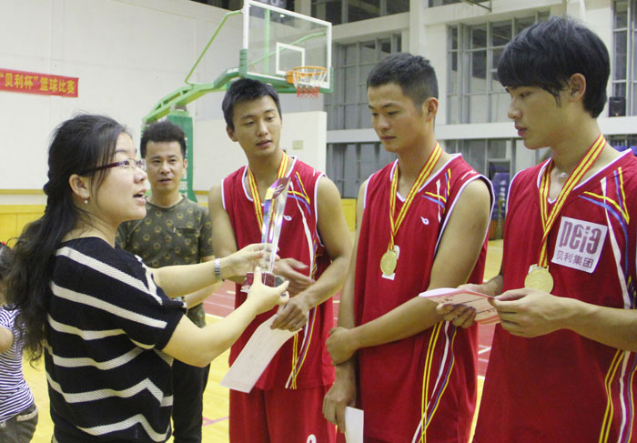 赛后,贝利集团工会主席徐国妹为本次篮球赛获得前六名的球队颁奖。