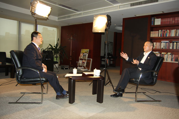 沈董(右)正在接受浙江经视《经视看地产》主持人王森(左)采访