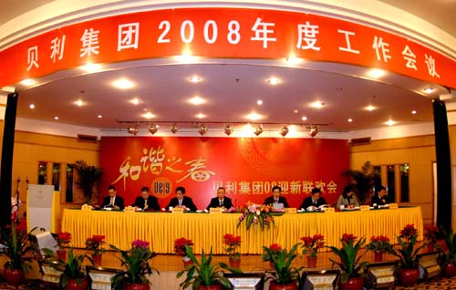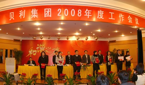 贝利集团2008年度工作会议于1月18日隆重召开。大会回顾总结了集团2007年度的工作,提出了2008年度的工作思路和要求,表彰了集团优秀员工、集团报优秀编辑、通讯员。集团300余名员工参加了此次大会,北京广通信达科技有限公司、杭州阿拉丁信息科技有限公司的高管人员也应邀出席了会议。集团总裁宋勇在大会上作了贝利集团2007年度工作报告,集团董事长沈国健作了重要讲话。