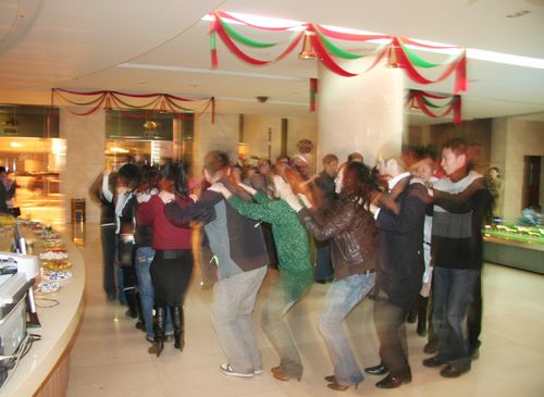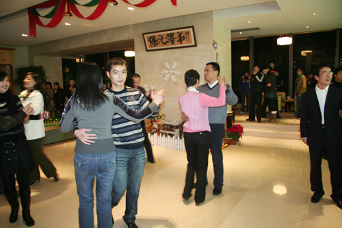 18:30,舞会正式开始。悠扬的音乐响起,男男女女们携着自己的舞伴款款走入舞池,随着音乐纵情欢舞,尽情娱乐,展示自己优美的舞姿和非凡的风采。绚丽的圣诞树,美仑美幻的音乐,配合默契的舞步,整个销售大厅此刻成了音乐与舞蹈的海洋。舞会中间还安排了四次抽奖环节,为员工们带来节日的惊喜。