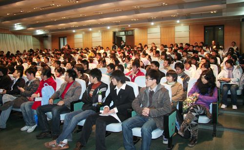整个论坛活动持续了两个多小时,浙江工商大学图书馆一楼报告厅座无虚席,就连过道上也挤满了闻讯而至的学生,数百名师生被沈国健董事长幽默风趣和形象生动的谈论深深吸引,现场掌声笑声不断。最后的互动环节,沈董一一回答了在场师生的提问,并寄语:杭商与浙商共发展!
