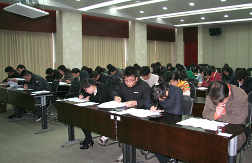 贝利集团二00九年度业务考试分别于11月23日和24日举行。集团下属新城房产、贝利建设、民安物业、贝利电子四家成员公司的182名干部员工参加了考试。贝利建设董事长许培章、民安物业总经理朱建华、贝利电子总经理郎洌、新城房产副总经理戴玲华进行了监考,集团总裁宋勇到场进行了巡视。