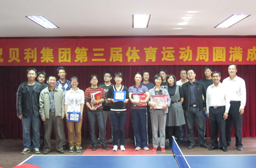 11月7日,贝利集团第三届体育运动周的项目之一——乒乓球比赛在新城社区活动室举行。参加本次比赛的有新城房产、民安物业、贝利建设和贝利电子四支代表队的13名选手。