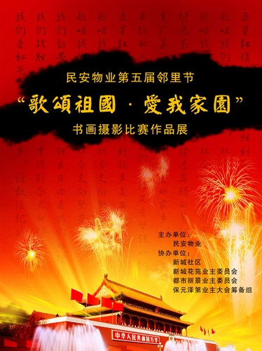 为庆祝中华人民共和国建国六十周年,丰富广大业主文化生活,创建文明和谐小区,贝利集团下属杭州民安物业管理有限公司于国庆、中秋“双节”期间组织所服务小区的业主开展了第五届邻里节即“歌颂祖国·爱我家园”业主书画摄影比赛及巡展活动。