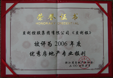 在日前召开的浙江省房地产协会专业报刊座谈会上,《贝利报》被评为“2006年度优秀房地产专业报刊”,受到在座专家、领导、同行的一致好评。