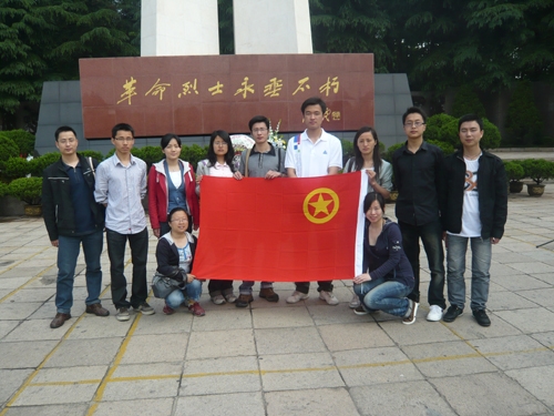 图:团员代表在革命烈士纪念碑前合影留念。