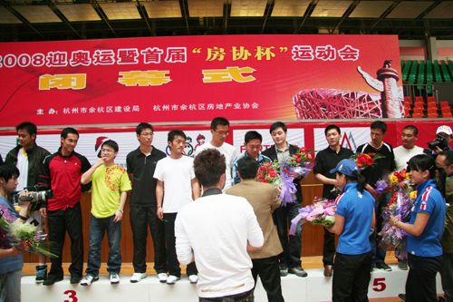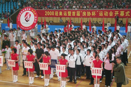 4月25日上午, 2008迎奥运暨首届“房协杯”运动会在区体育馆隆重开幕,这是余杭房地产界规模最大的运动会,区人大常委会副主任凌美娟,副区长徐美娟,区政协副主席黄莉,以及众多房地产公司的负责人出席开幕式,贝利集团派代表队积极参加了此次运动会。