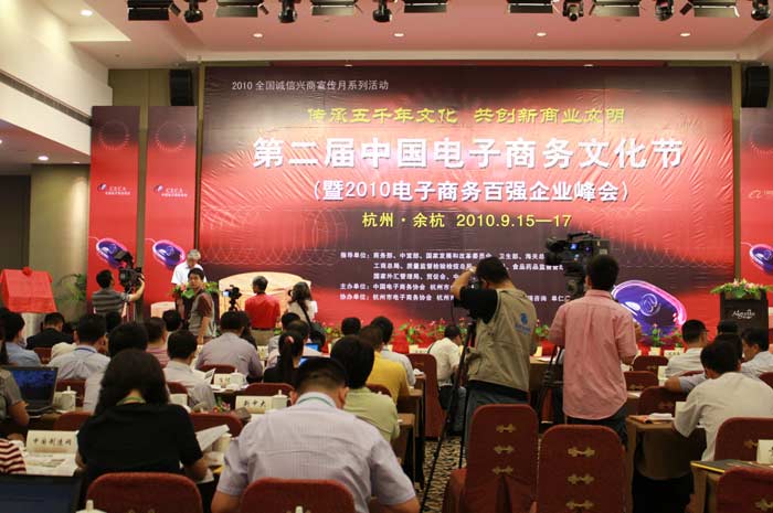 9月15日,第二届中国电子商务文化节暨2010电子商务百强企业峰会在杭州余杭隆重开幕。本届中国电子商务文化节暨2010电子商务百强企业峰会由中国电子商务协会与杭州市余杭区人民政府联合举办。来自全国各地的电子商务百强企业、其他电子商务企业代表及嘉宾700余人参加了盛会。
