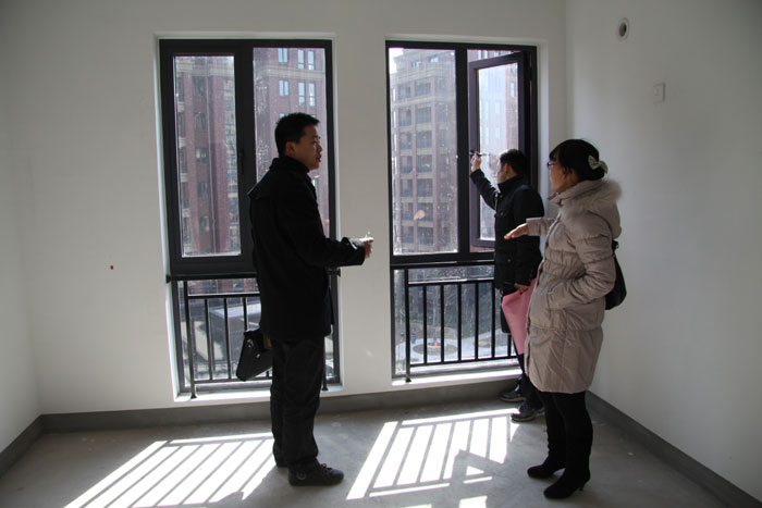 工作人员带领业主仔细验房