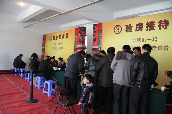 交房当天一大早,业主陆续来到现场办理交房手续,接近零度的低温丝毫没有影响业主们领取新房钥匙的兴奋与热情。在交房现场的几个服务大厅,面带微笑的工作人员为来自四面八方的业主提供细致周到的服务,从接待验证、财务结算、验房接待、物业签收等流程,都有专门的工作人员陪同引导,交房过程井然有序,很多业主都说让他们感受到了家的温馨。