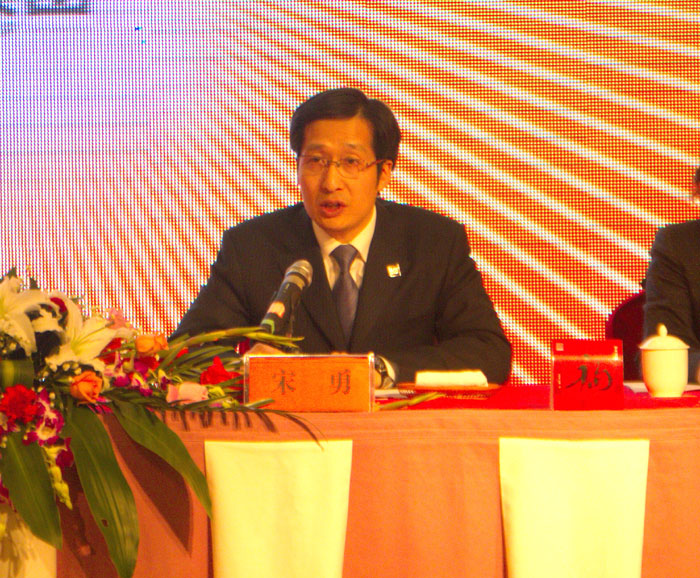 会议在高亢激昂的国歌声中正式开始。集团总裁宋勇作了《贝利集团2010年度工作报告》。