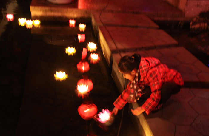点燃荷花灯