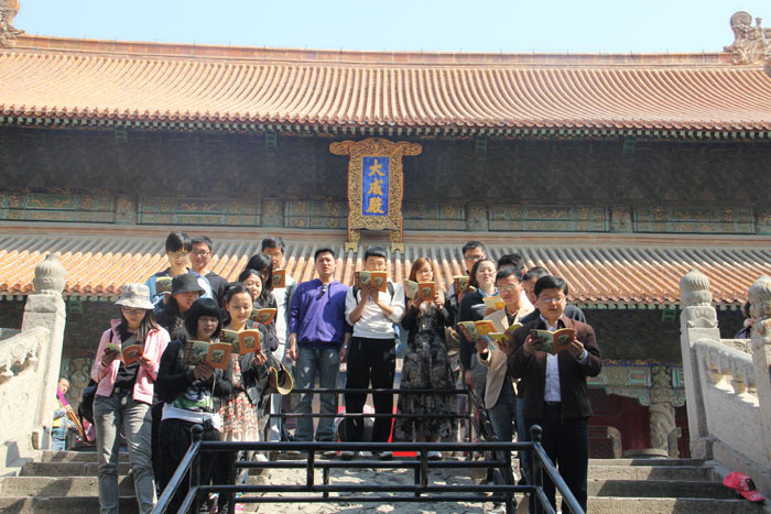 贝利电子员工在孔庙大成殿前诵读《弟子规》