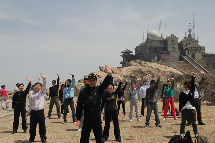 员工在泰山之巅集体演练《八段锦》