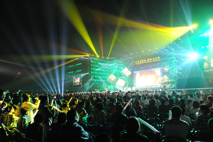开幕式后,一曲红红火火的《好日子》,拉开了晚会序幕。青年偶像歌手韩庚为大家带来《MY LOGO》等三首歌曲,瞬间引爆全场;孙燕姿、韩红、孙楠、羽泉组合等实力牌明星带来《绿光》、《天路》、《传奇》、《最美》等传唱颇为广泛的歌曲,为晚会掀起一阵阵高潮;更有老艺术家杨洪基等带来的《滚滚长江东逝水》,中央电视台《我要上春晚》栏目的技能展示《流光溢彩》,台下欢声笑语,掌声此起彼伏。