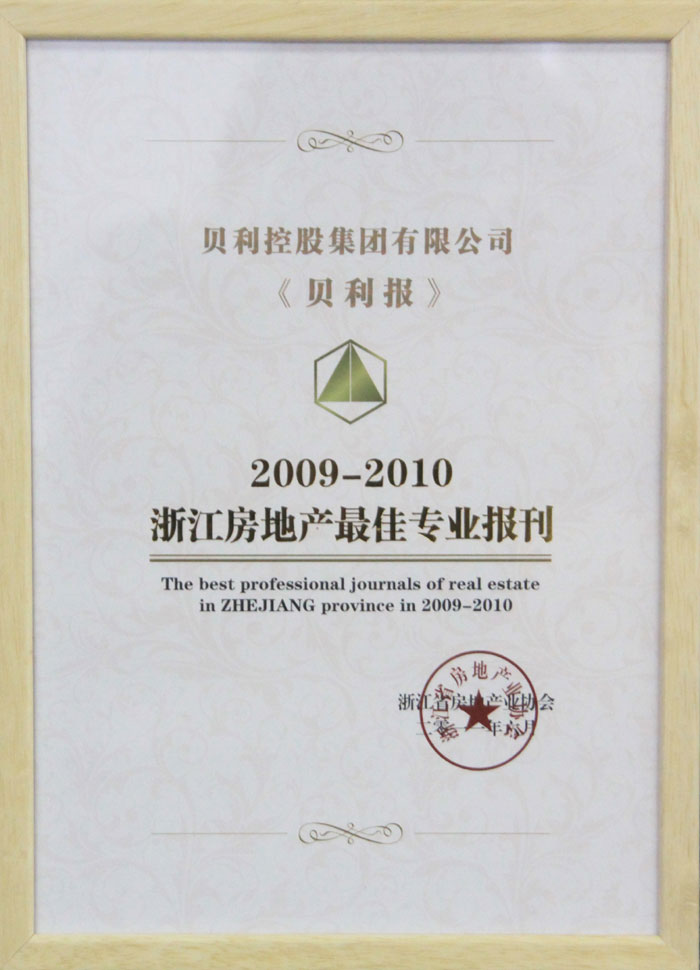 《贝利报》被授予“浙江房地产最佳专业报刊”荣誉称号