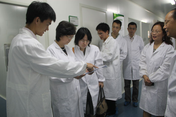 李兰娟院士一行先后参观了公司宣传墙、实验室等,并认真听取了项春生教授关于宫内膜干细胞技术与易文赛公司的相关介绍。