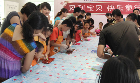 在为期7天的活动里,每天都有数个新的亲子项目亮相,每一个活动都由专业的老师现场授课,解析制作步骤,分享制作技巧。饼干烘焙、蛋糕DIY、手工彩泥雕塑、T恤彩绘、彩陶制作、手工包DIY、沙画、胶画……多款有趣好玩的游戏,轮番上演。这样大规模、长时间的活动,在塘栖前所未有,因此吸引了不少客户到场参与,现场火爆。
