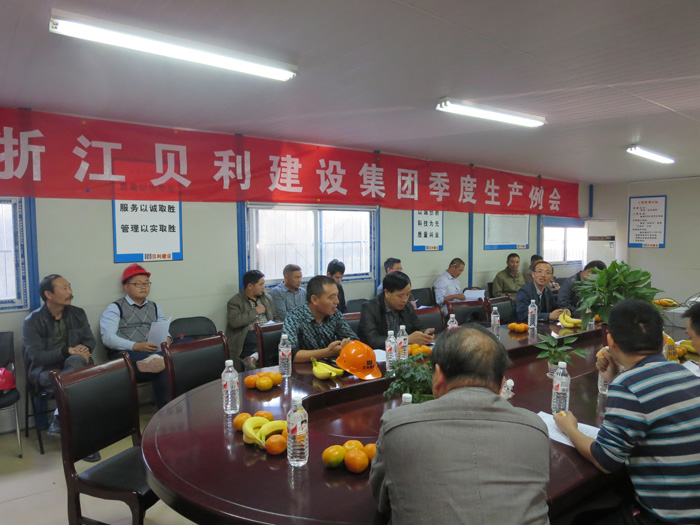 为保障工程质量安全、提升工程管理水平,11月3日,贝利建设集团在仓前街道灵源村农民高层公寓一期项目部召开季度生产例会。集团相关职能部门负责人及各在建工程项目经理、项目质量、安全负责人等三十余人参加本次会议。