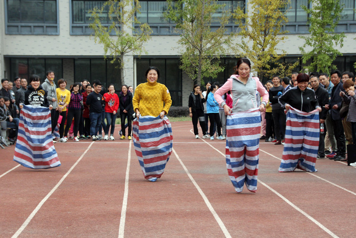 本次比赛分男女组,进行袋鼠跳、套圈和20米短跑三个环节,用时最短者获胜。随着哨声吹响,比赛开始了,运动员们把自己装在布袋中,开始一蹦一蹦地模仿袋鼠向前跳,到达终点后套中圈,然后再以最快的速度返回起点。比赛过程精彩纷呈,特别是袋鼠跳环节显得尤为激烈,趣味性十足。