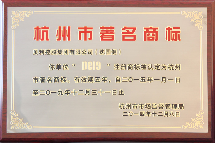 日前,贝利控股集团有限公司“PELE”商标被杭州市工商局认定为“杭州市著名商标”。