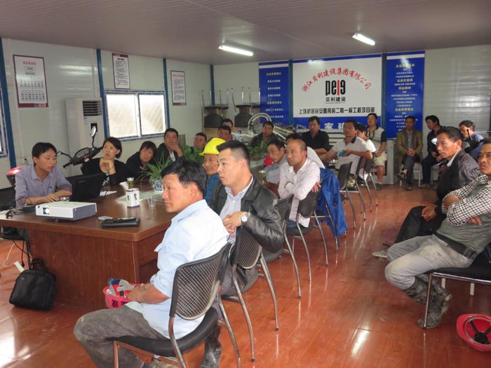 公司安全生产培训讲师重点讲述了建筑施工过程中极易发生意外伤害的几个方面,通过实际案例和事故图片生动展示了安全生产的重要性,并通过播放安全生产警示视频,有效的提升了民工兄弟的安全生产意识。