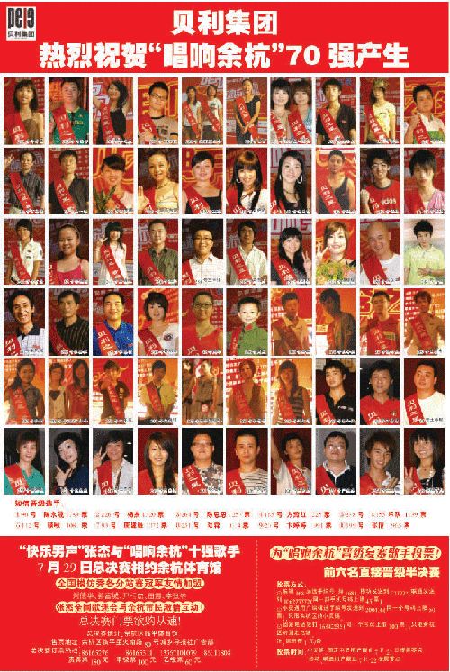 贝利集团热烈祝贺“唱响余杭”70强产生