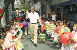 在育才实验小学,朱金坤听取了校领导的工作汇报后说,小学是教育的基础,“育才”要发挥优势,带动周边学校的发展,为提升余杭教育的整体水平作出贡献。在运河镇五杭中心幼儿园,朱金坤抱起可爱的孩子,祝小朋友们节日快乐。国泰幼儿园的小朋友身穿节日的盛装,跳着风车舞,给区领导们戴上亲手编织的花环,并送上自己创作的儿童画。“画得真不错”,朱金坤禁不住称赞。朱金坤对幼儿园的建筑设计和教育设施表示满意,他祝愿小朋友在良好的环境中健康成长。