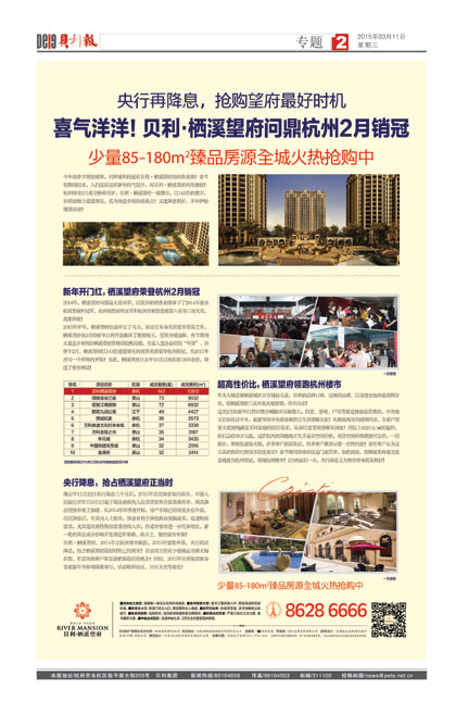 央行再降息,抢购望府最好时机 喜气洋洋!贝利·栖溪望府问鼎杭州2月销冠